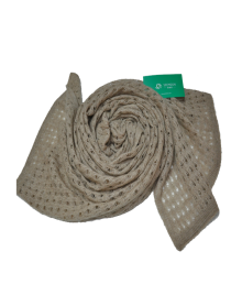 100% 羊絨挑孔加絲綢包邊圍巾