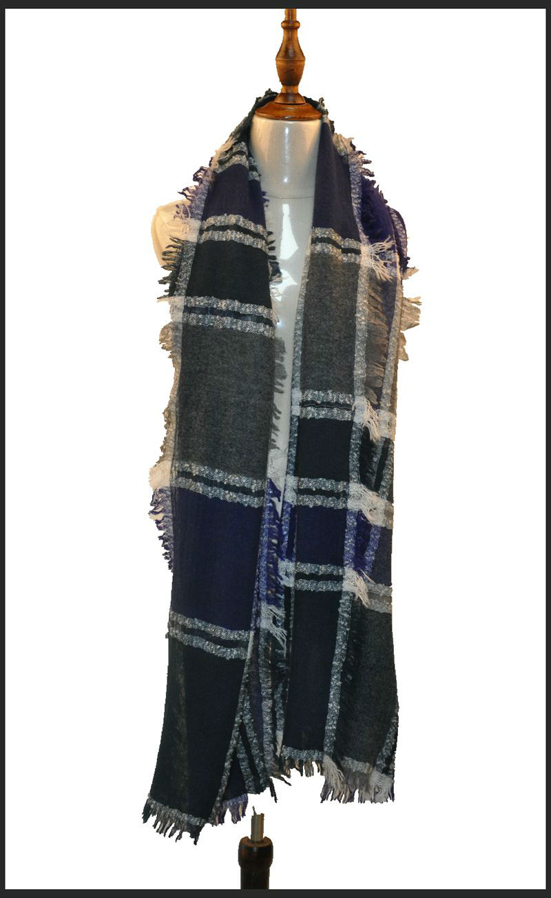 羊絨彩格圍巾