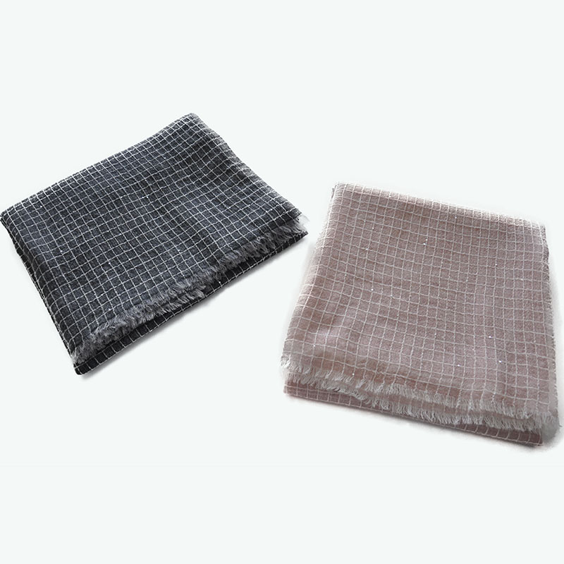 羊毛水溶珠片色織格披肩